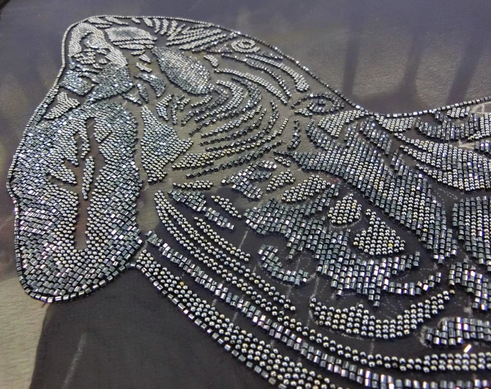 Sinking deep in love with an incompatible partner lead to surrender and loss of control. The history of this complex relationship is floating on a this delicate deep blue silk georgette kaftan and shining through the embroidery.